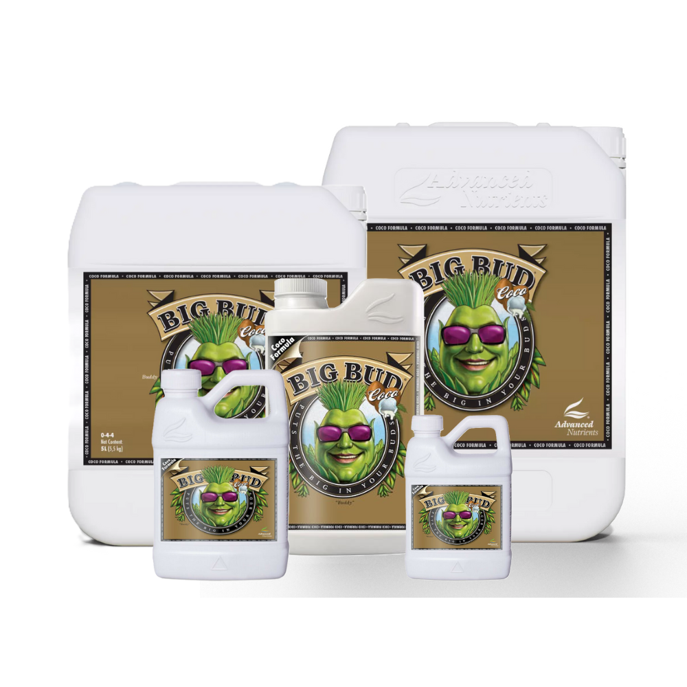 Big Bud Coco is a coco specific bloom booster created with ascorbic acid, citric acid, all 20 L-form amino acids, potassium, phosphorus, and magnesium with the correct ratios in an easy to use liquid.